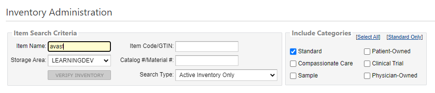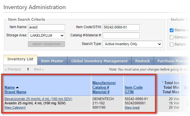 Before loading an item to your site's Lynx formulary, it is recommended to search for it via the Inventory List on the Inventory Administration page to make sure it is not already loaded for your site.