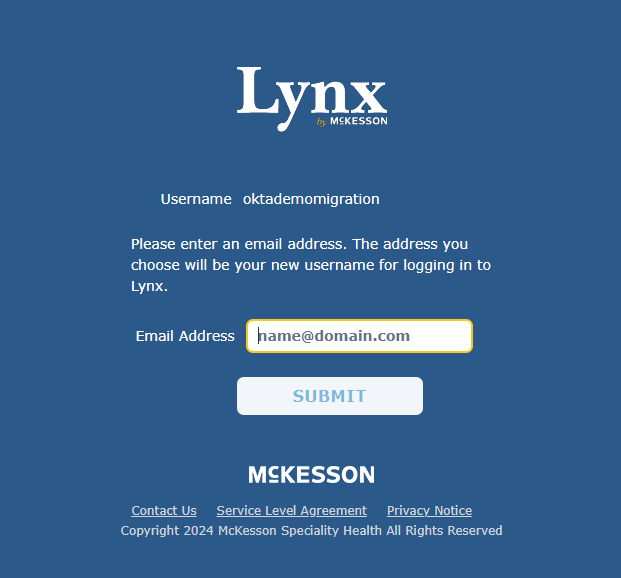 If your practice has initiated the migration to Okta, you are prompted to enter your work Email Address and click SUBMIT.