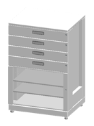 The Lynx RX3 Half Cabinet consists of two stacked modules and often has the Lynx PC, monitor, keyboard, mouse, and label printer on top of the unit. A module can be: